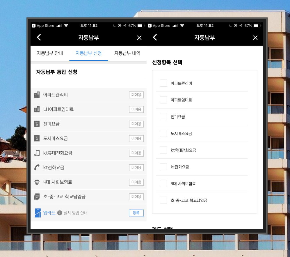 요즘에 저는 대부분의 일을 스마트폰으로 처리합니다. 유저 인터페이스가 직관적이라 편해요. 컴퓨터와 다르게 필요한 서비스만 화면에 나오기 때문이죠. 아파트관리비를 신청하기 위해서는 현대카드 어플을 다운 받아 설치해야 합니다. 나중에 내역서를 바로 확인하고 싶을 때에 이용할 수 있는 어플이라 좋아요.