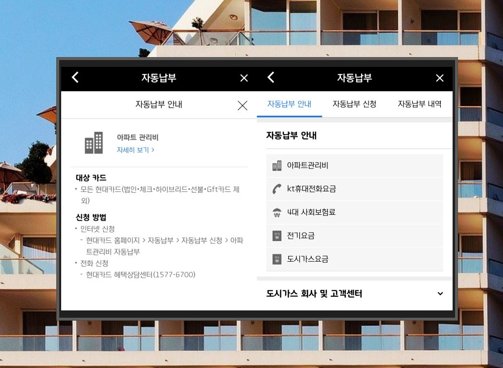 요즘에는 여러 혜택을 받거나 실적을 인정받기 위하여 신용카드를 이용하는 분들이 많습니다. 현대카드에서도 아파트 관리비 자동 납부 할인혜택 이벤트가 있었습니다. 지금도 하고 있는지 모르겠네요.