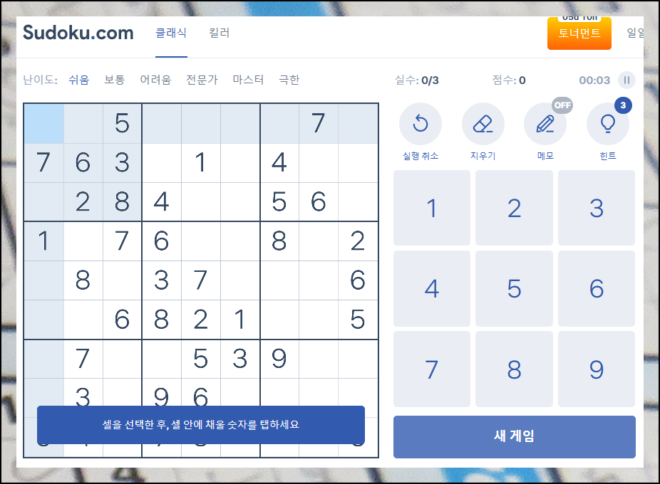 스도쿠 무료 게임 클래식부터 킬러까지 문제모음 무료로 즐기기
