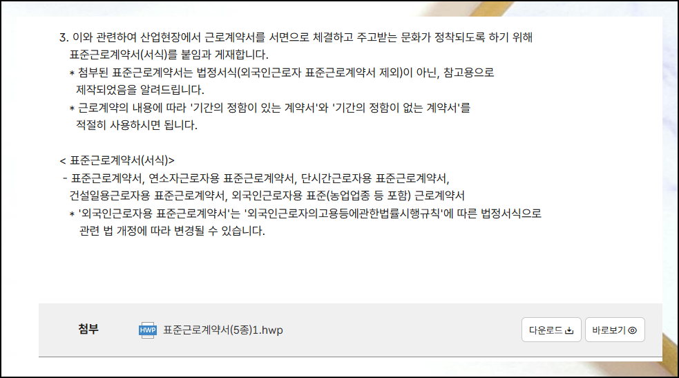 원하시는 근로계약서를 클릭 한 번으로 받아보세요. hwp 형식으로 제공되는 다섯 가지 양식을 미리보기로 확인하고 다운로드할 수 있습니다. 편리하고 손쉬운 방법으로 준비했어요.