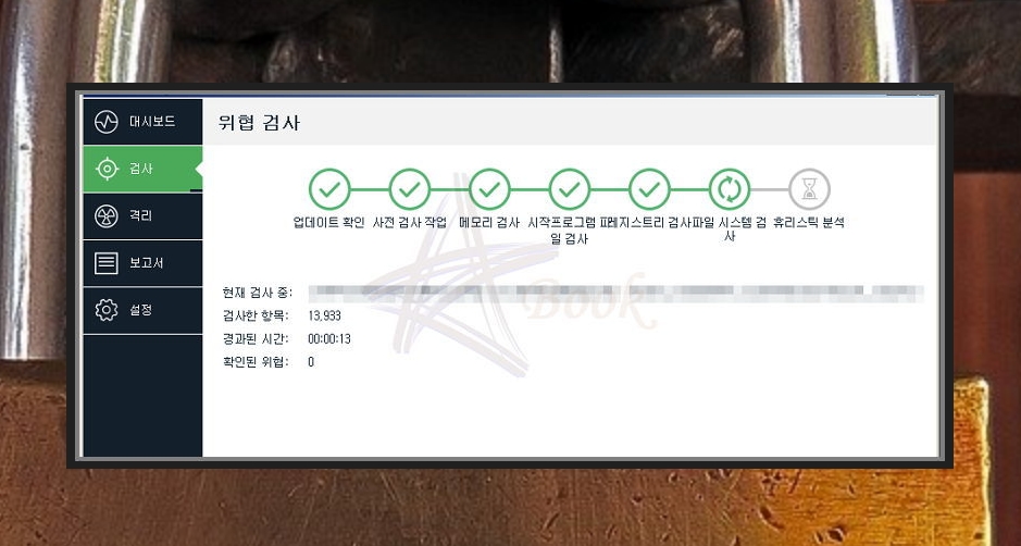 본격적으로 금융감독원을 위장한 악성 팝업창을 제거하도록 하겠습니다. 검사 버튼을 누른 후 원하는 검사를 선택해 주세요. 자신의 컴퓨터에 문제가 많다고 생각이 든다면 '위협 검사'를 하는 것이 좋습니다.