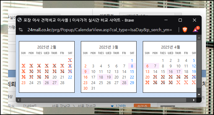 주소 검색 버튼을 눌러 위치를 입력할 때에는 정확한 결과를 얻기 위해 가옥구조의 층수, 면적까지 입력하도록 되어 있습니다. 층수의 경우 사다리차 필요 여부를 결정하는 핵심 요소에 해당하죠. 이런 식으로 정확한 면적 정보를 제공하면 정확한 견적에 도움이 됩니다. 이사 일정은 간단히 버튼 클릭으로 선택 할 수 있어요. 사무실 공간의 특성을 잘 반영해야 현실적인 이전 비용이 산출됩니다.