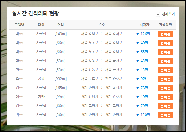 면적과 거리에 따라 대략적인 비용을 확인하거나 비교할 수 있습니다. 실시간 견적의뢰 현황을 통해 말이죠. 이것을 통해 시세가 어느 정도 되는지 감을 잡을 수 있어요. 비슷한 조건의 견적을 선택해 나의 사무실 이사 상황과 빠르게 비교해보세요. 이런 방식을 사용하면 일반적인 방식보다 더 많은 자료를 검토할 수 있습니다. 이사 계획을 세울 때 이런 자료는 매우 유용해요.
