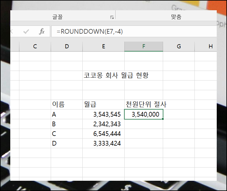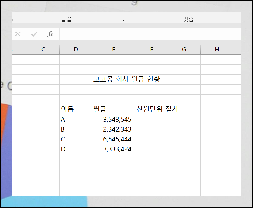 엑셀 천원단위 절사 방법, 예시로 이해하기