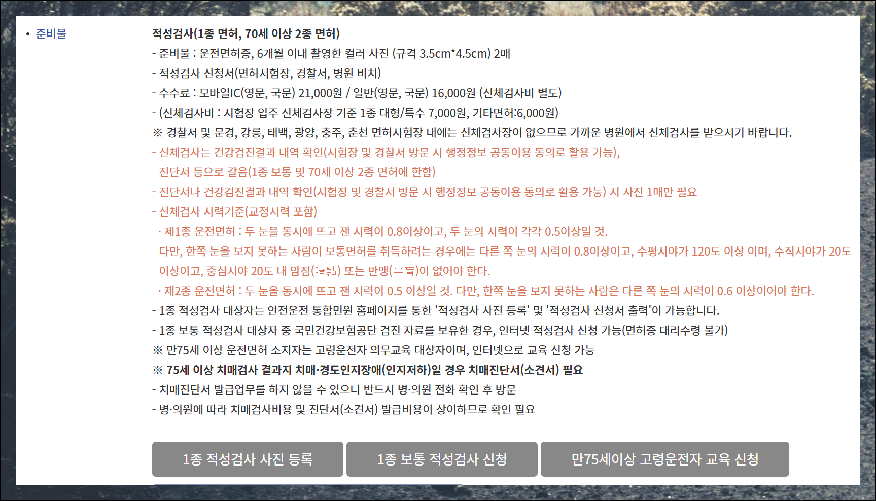 검사받으러 출발하기 전에 꼭 챙겨야 할 준비물을 마지막으로 정리해드릴게요. 면허증, 컬러 사진 2매, 신청서, 수수료 16,000원 이렇게 네 가지만 기억하시면 돼요. 만약 시험장에서 신체검사를 받기 어려운 상황이라면 미리 가까운 병원에서 받고 오는 방법도 있으니 참고하시길 바랍니다.