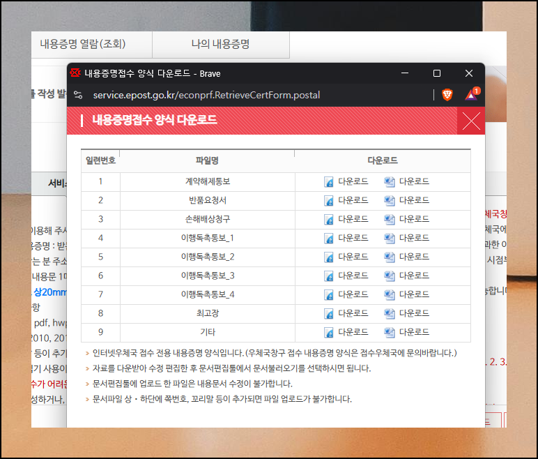 내용증명 무료서식 다운로드 및 발송, 초보자도 쉽게 따라하기