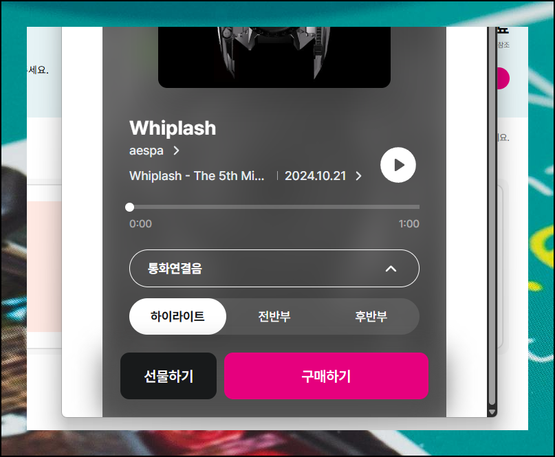"듣기" 버튼을 누르면 실제 음원을 미리 들어볼 수 있어요. 가격 정보도 함께 확인할 수 있습니다. 핸드폰 컬러링 음원은 대부분 3가지 구간으로 나뉘어 있어요. 하이라이트 부분, 전반부, 후반부로 말이죠. 각 구간을 모두 들어보고 마음에 드는 음원을 찾았다면 "설정" 버튼을 누르면 됩니다. 그럼 즉시 해당 음원으로 통화연결음이 바뀌어요.