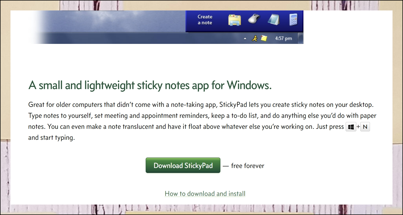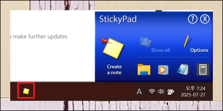 실제로 메모장 작성을 해볼까요. 소프트웨어의 메인 화면에서 "Create a note"라는 버튼을 눌러보세요. 그러면 포스트잇 모양의 작은 창이 화면에 나타날 거예요. 이 창을 마우스로 클릭한 다음 키보드로 원하는 내용을 자유롭게 입력하면 되는 거죠.