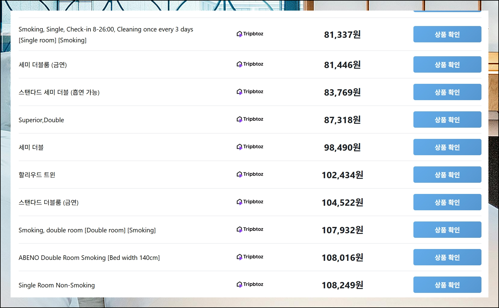 (5) 다양한 숙소 옵션 확인