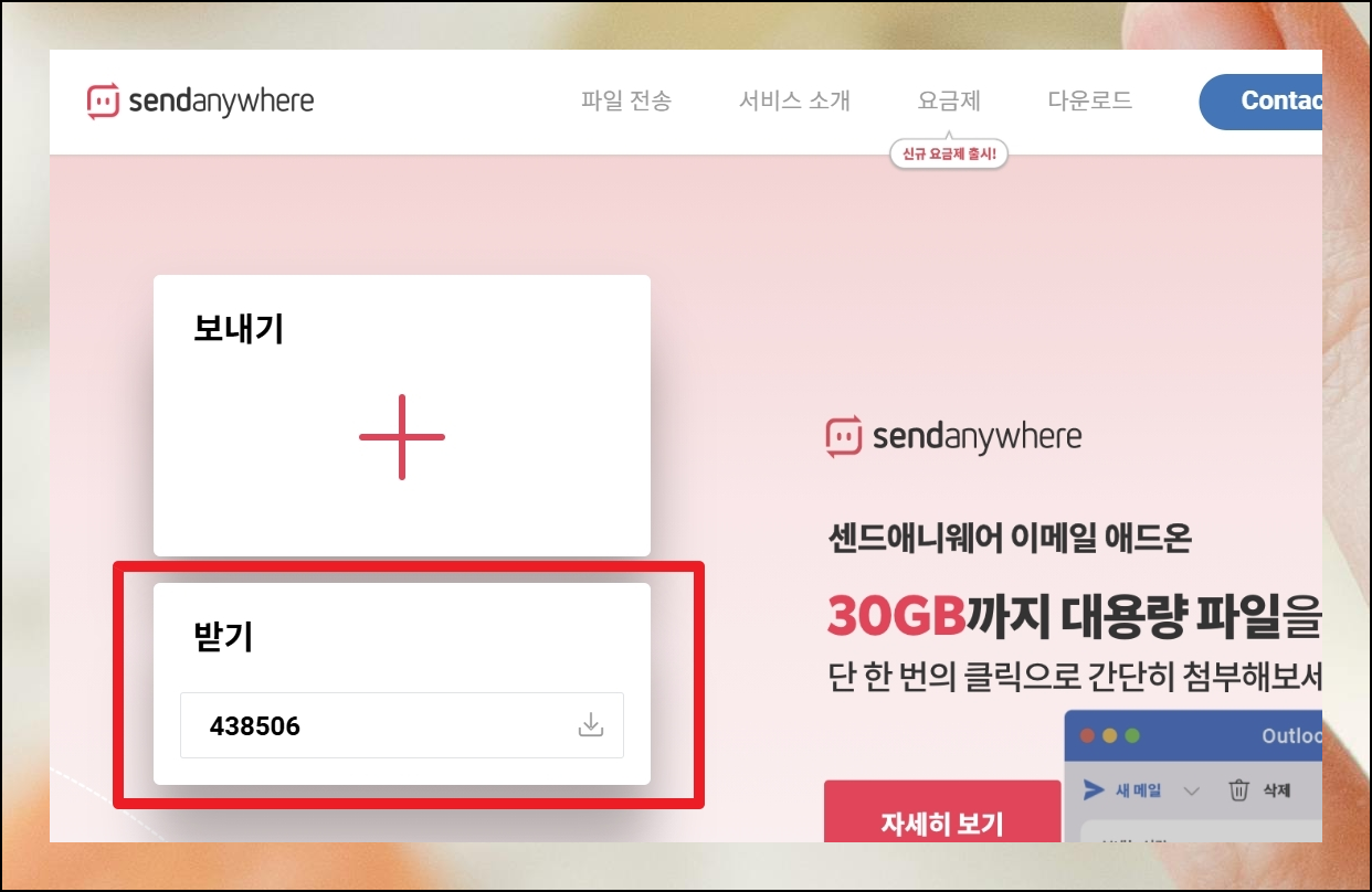 pc에서는 특별한 프로그램 설치가 불필요해요. 컴퓨터로 센드애니웨어 웹사이트에 접속하기만 하면 됩니다. 거기에서 숫자 코드만 입력하면 끝이에요.