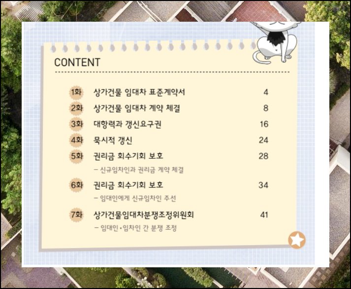 만화로 구성된 안내서가 마련되어 있어서 어려운 내용도 쉽게 이해할 수 있어요. 부동산 거래나 임대 업무가 생소한 분들이라면 법률 지식을 자연스럽게 습득할 수 있으니 꼭 읽어보시기 바랍니다. 실제로 부동산 임대차 계약서 작성을 진행하기에 앞서 미리 한 번 훑어보시면 큰 도움이 될 거예요.
