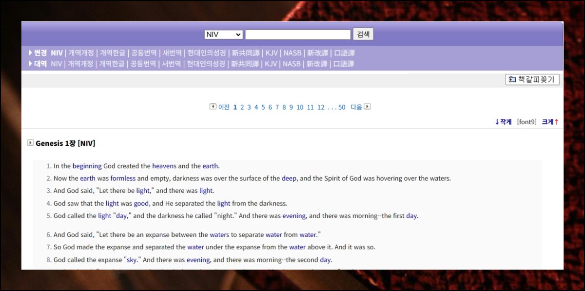 영어로만 읽는 게 부담스러운 분들께 추천하고 싶은 곳이 있어요. 홀리바이블이라는 플랫폼인데요. 이곳에서도 NIV를 무료로 이용할 수 있습니다. 단, 음성 파일은 제공되지 않아요. 텍스트 형태의 자료만 열람 가능하다는 점 참고하세요.