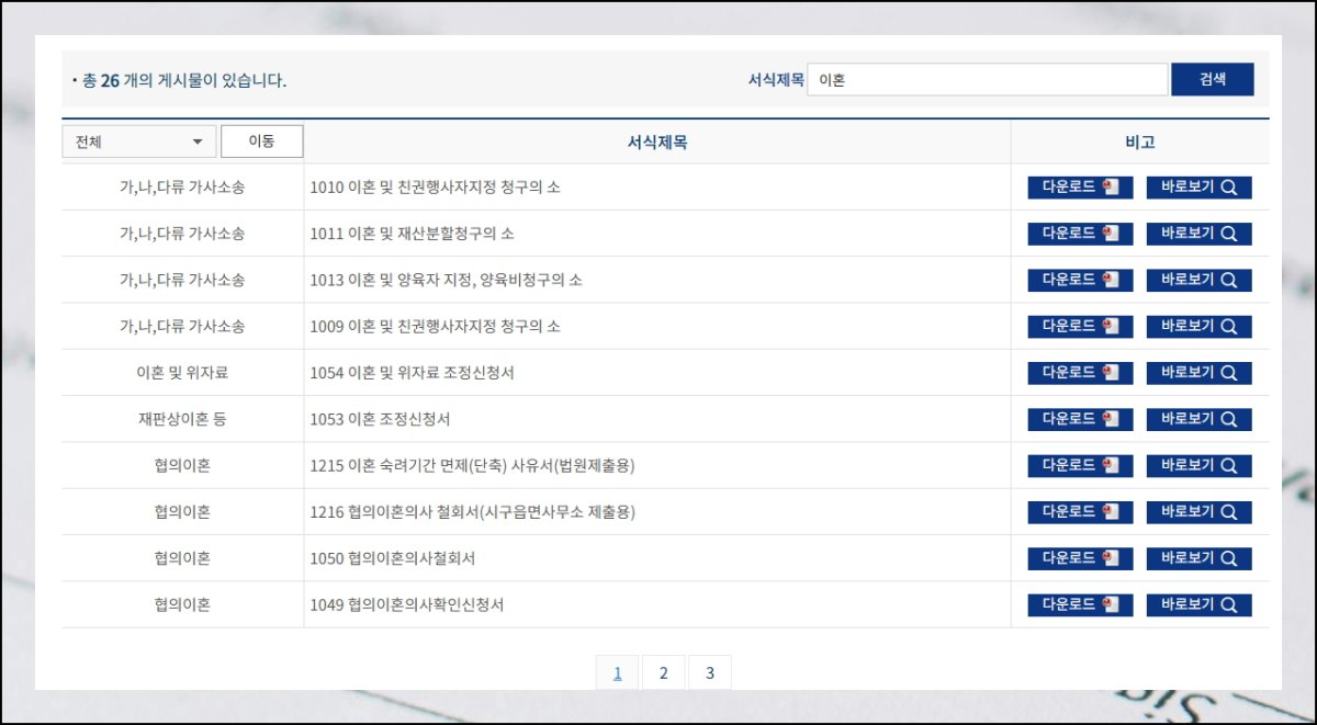 제가 사전에 정리해둔 이혼서류 양식 모음을 먼저 확인해보시는 게 좋겠어요. 본인 상황에 맞는 문서를 찾아서 즉시 무료다운 받으실 수 있습니다. 만약 이 목록에서 원하는 양식을 찾지 못하셨다면 아래 단계를 참고하셔서 진행하시면 되요.