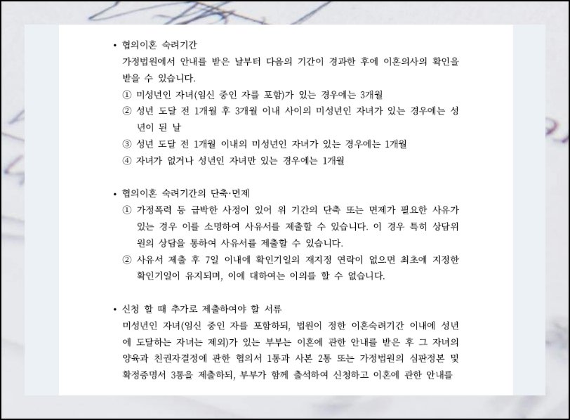 이혼서류 무료다운 방법과 제출이 필요한 문서들에 대해 안내해드렸는데요. 더 구체적이고 전문적인 정보가 필요하신 분들은 관할 가정법원에 직접 전화로 문의해보시는 걸 추천드려요.