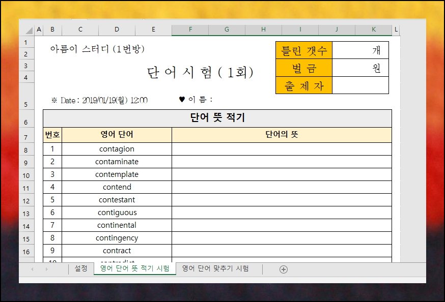 영어 단어 시험지 양식을 활용하면 학습 내용을 스스로 점검할 수 있습니다. 스터디 모임에서 돌아가며 문제를 출제하고 풀어보는 방식도 추천드려요. 서로 암기 상태를 확인해주면 동기 부여에도 큰 도움이 됩니다. 오늘은 엑셀로 제작된 무료 시험지 양식을 공유해드릴게요. 간편하게 다운받아 활용해보세요.