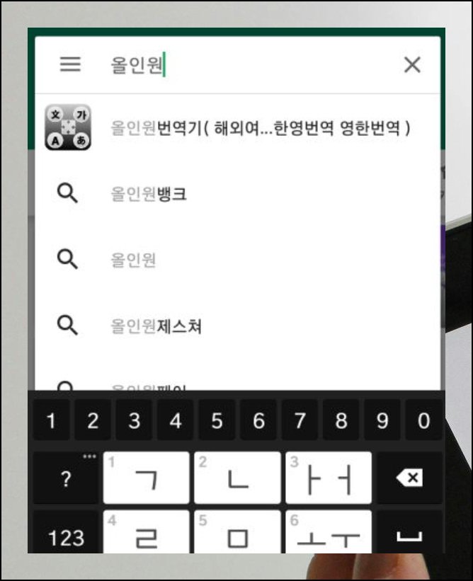 스마트폰을 켜고 구글 플레이 스토어를 실행하세요. 다양한 앱을 내려받을 수 있는 공간입니다. 화면 상단에 검색창이 보일 거예요. 해당 부분을 터치한 후 올인원을 입력하면 됩니다.