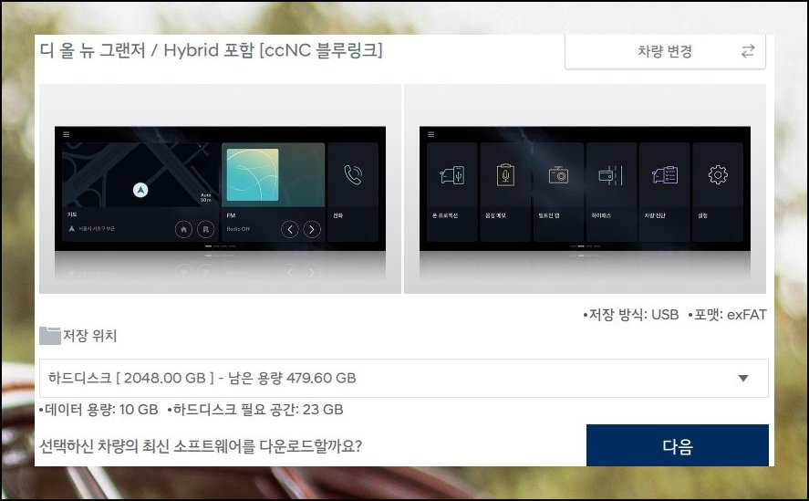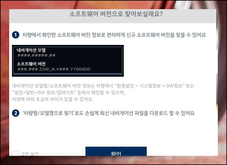 과정이 복잡하지 않아요. 현대자동차 내비게이션 화면의 소프트웨어 정보를 입력해 해당 모델을 지정하세요. 저장 경로만 잡으면 세팅이 마무리됩니다.