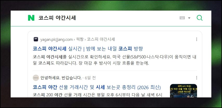정규장 마감 이후 밤사이 해외 시장이 크게 출렁이면 다음 날 코스피 출발이 어떨지 궁금해지기 마련입니다. 잠들기 전 야간선물 흐름만 잠깐 훑어봐도 아침 개장 분위기를 한결 수월하게 짐작할 수 있어요. 코스피 야간선물 실시간 시세를 별도 가입 없이 곧바로 조회할 수 있는 페이지가 있다는 사실을 알고 계셨나요.
