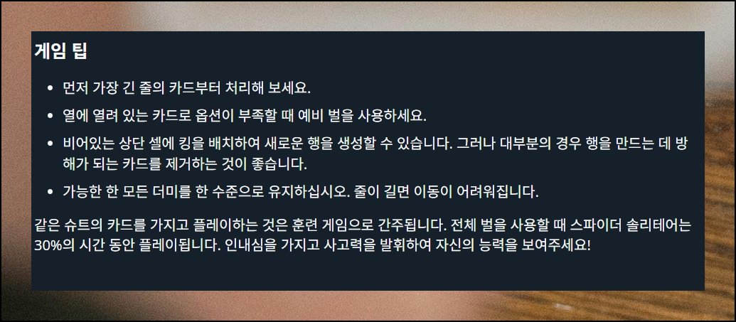 비용 부담 없이 스파이더 카드놀이를 즐기는 방법을 정리해 봤어요. 틈날 때 한 판씩 도전하며 기분 전환해 보시길 바랍니다.