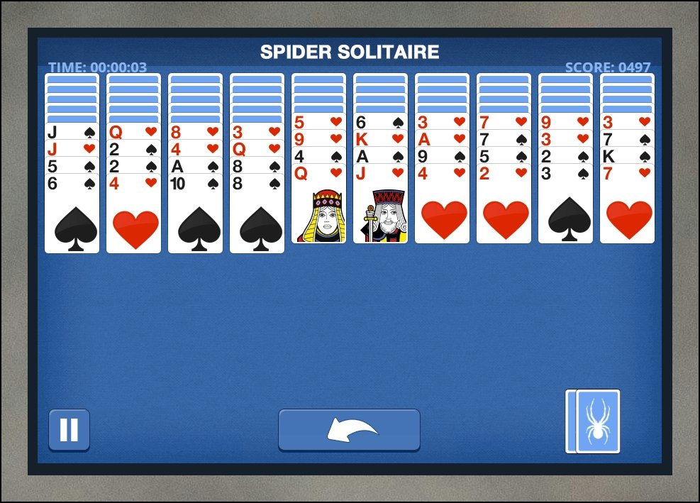 스파이더 카드놀이의 진행 방식을 먼저 익혀두는 게 좋습니다. 한동안 손을 놓았다면 규칙이 헷갈릴 수 있으니까요. 배치는 앞쪽 네 줄에 여섯 장, 나머지 여섯 줄에 다섯 장으로 구성돼요. 첫 번째 줄에는 합계 열 장이 놓입니다. 동일한 문양을 킹부터 에이스 순서로 맞추는 것이 목표예요. 숫자가 낮은 패는 높은 패 위로만 옮길 수 있고요. 빈칸을 똑똑하게 쓰는 것이 스파이더 승패를 가르는 포인트입니다. 이동할 곳이 없을 때는 줄마다 한 장씩 새로 받아올 수 있어요.