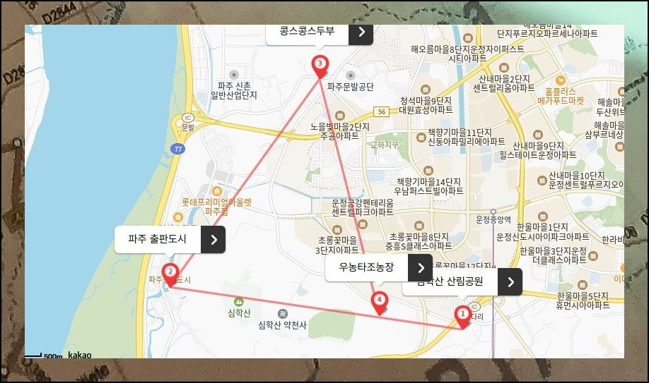 지도 보기를 활성화하면 루트에 속한 각 포인트가 시각적으로 펼쳐집니다. 심학산 산림공원부터 파주 출판도시, 콩스콩스두부, 우농타조농장까지 서울 근교에서 하루 분량으로 설계된 경로예요. 별도로 머리 쓸 필요 없이 안내대로 움직이면 그만입니다. 한 차례 외출만으로 다채로운 갈만한곳을 빈틈없이 경험 가능해요.