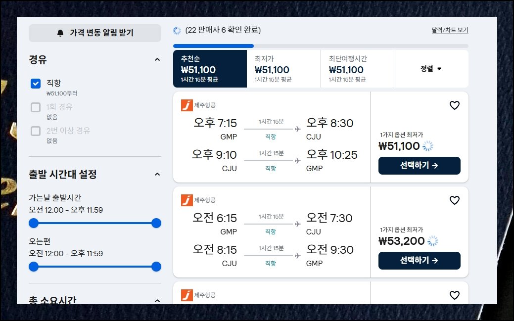 몇 시에 뜨는 비행기를 탈지도 항공권을 싸게 구입하는 데 영향을 줍니다. 이른 아침이나 자정 무렵 출발편은 공항 접근 자체가 까다로울 수 있어요. 무리 없는 시간대로 변경하면 운임이 약간 붙지만 체감할 만큼 큰 폭은 아니에요.