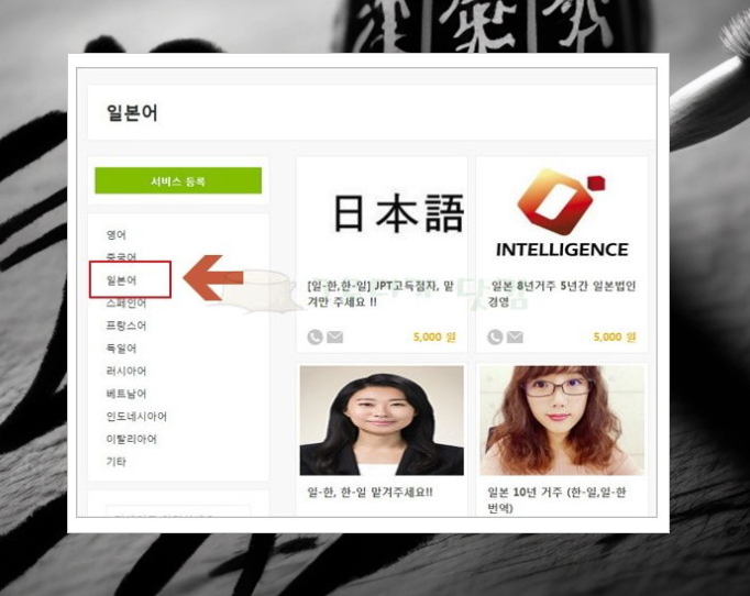 가장 먼저 나오는 것은 일어 번역일을 할 수 있는 분들이 나오는데요. 보통 장당 5000원이면 이용할 수 있습니다.