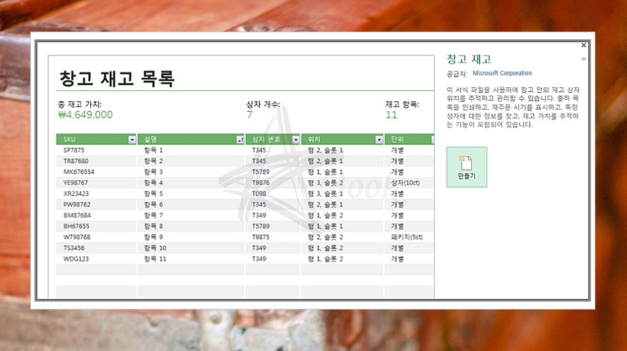 저는 창고관리 프로그램으로 이용할 수 있는 '창고 재고 목록'을 선택했는데요. 무료이기도 하고 간단해 보이지만, 출하 목록을 인쇄한다든가, 재주문 시기를 표시하고, 특정 상자에 대한 정보를 찾는 등 다양한 기능을 갖추고 있습니다.