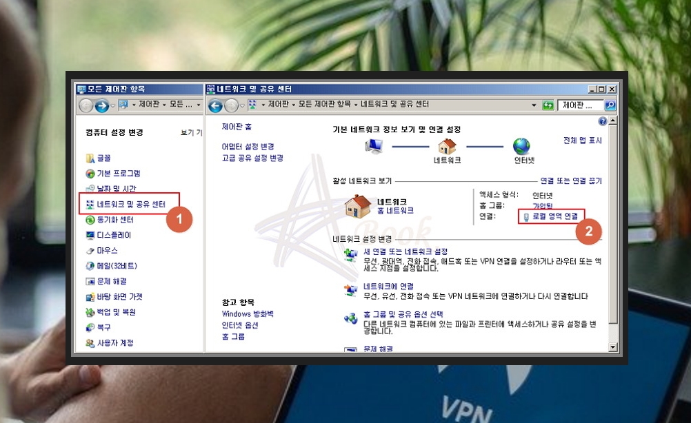 그럼 위와 같이 '모든 제어판 항목'이 나타납니다. 여기에서 '네트워크 및 공유센터 ▷ 로컬 영역 연결'을 순서대로 클릭하시면 됩니다.