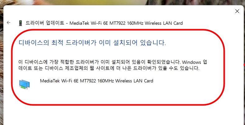 11. 제 경우에는 이미 최적의 드라이버가 설치되어 있기 때문에 문제 없어요.