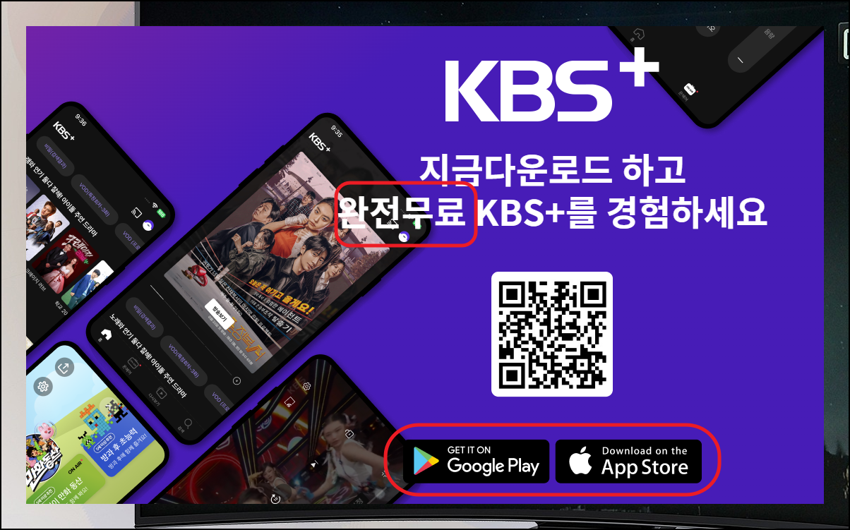참고로 KBS에서는 스마트폰 앱을 제공하고 있는데요. 완전 무료 OTT 서비스라고 합니다. 안드로이드폰, 아이폰 모두 설치 가능해요. 컴퓨터로 TV 프로그램을 무료로 다시보기 하고 싶을 때 이용하면 좋겠네요. 스마트폰 특성상 사이트에 접속하는 것보다 앱이 편할 수 있죠.