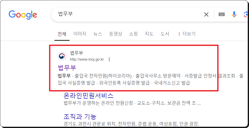 그럼 법무부 사이트에 접속하여 메뉴를 선택해 주세요.