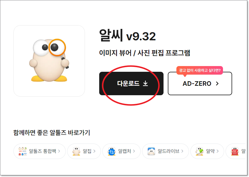 바로 다운로드 버튼이 있으니 클릭해 주세요. 동영상 프로그램이 아닌 이미지 뷰어 및 사진 편집 프로그램을 다운로드 받는 것이 의아해 하실 수 있는데요. 순서대로 따라하면 동영상 제작 프로그램까지 무료다운로드 받을 수 있습니다.