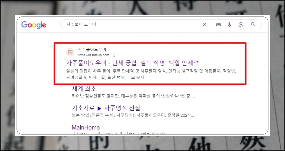 | 무료 이름 사주풀이 이용 방법 앞날의 길잡이 (2) | 2024.10.22 |