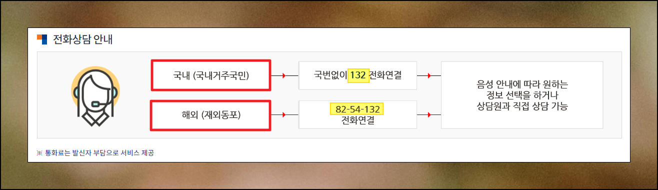 일단 법률상담을 받을 수 있는 전화번호를 알려 드리겠습니다. 국번없이 132번을 입력하면 서비스 이용을을 진행할 수 있어요. 해외에 계신 분들은 전화번호가 살짝 차이가 있는데요. 82-54-132번을 누르면 됩니다. 전화번호를 입력하면 음성 안내가 나오거나 담당자와 통화 하게 됩니다. 안내에 따라 진행하시면 돼요.