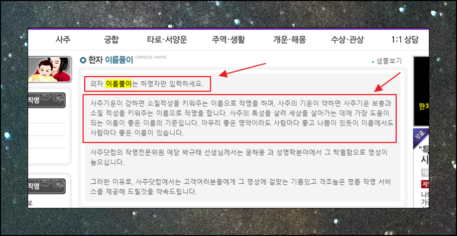 무료 이름 사주풀이 이용 방법 앞날의 길잡이