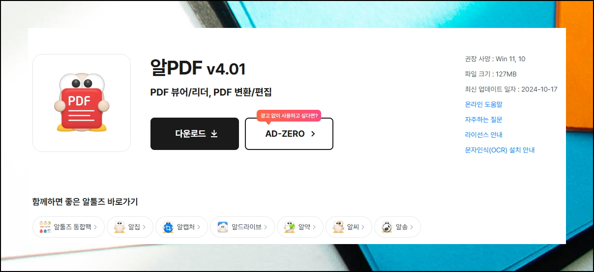 국내에서 널리 쓰이는 한글 문서 포맷 HWP도 손쉽게 변환할 수 있는 프로그램을 찾기가 쉽지 않은데요. 오늘은 특별히 hwp 파일로 변환할 수 있는 무료 프로그램을 여러분께 상세히 알려드리도록 하겠습니다. 알툴즈 또는 알pdf 사이트에 접속해 주세요.