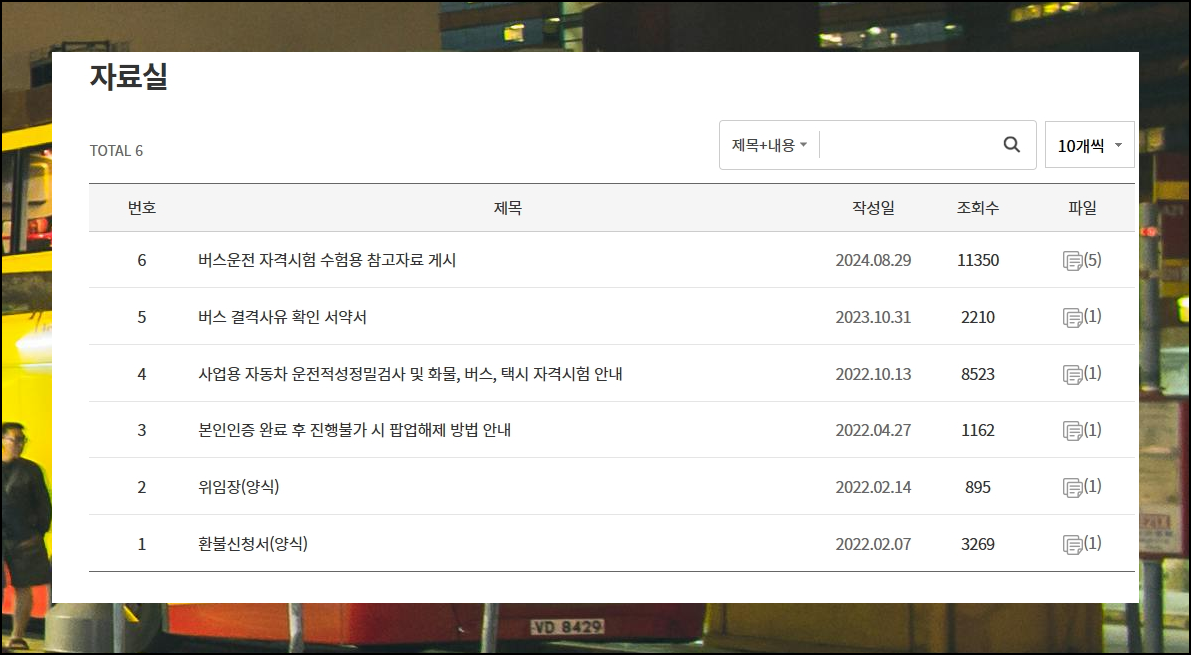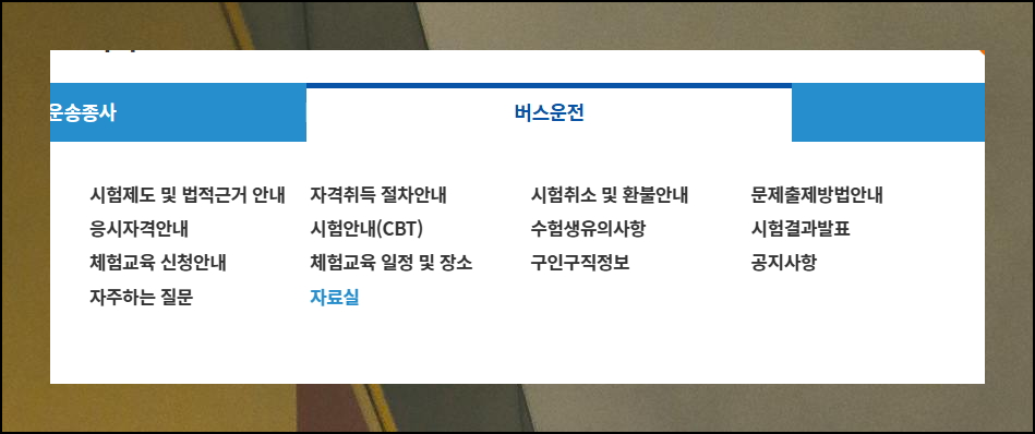 해당 사이트에 들어가면 자료실 메뉴가 있습니다. 이곳에서 제공하는 기본 학습자료와 함께 다음 단계에서 알려드리는 기출문제를 함께 활용하시면 합격률이 높아질 수 있어요. 버스운전에 관련되어 많은 것을 배울 수 있으니 꼭 활용해보시기 바랍니다. 자료는 컴퓨터나 태블릿에 저장해두면 편리합니다.