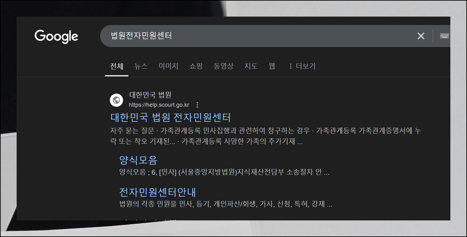 필요한 양식들은 대한민국 법원 전자민원센터 웹사이트에서 받을 수 있어요. 전체메뉴에서 양식모음을 클릭하면 됩니다. 이곳에서 얻을 수 있는 서식을 활용 및 참고하면 이혼 절차를 진행함 에 있어서 좀 더 수월해져요.