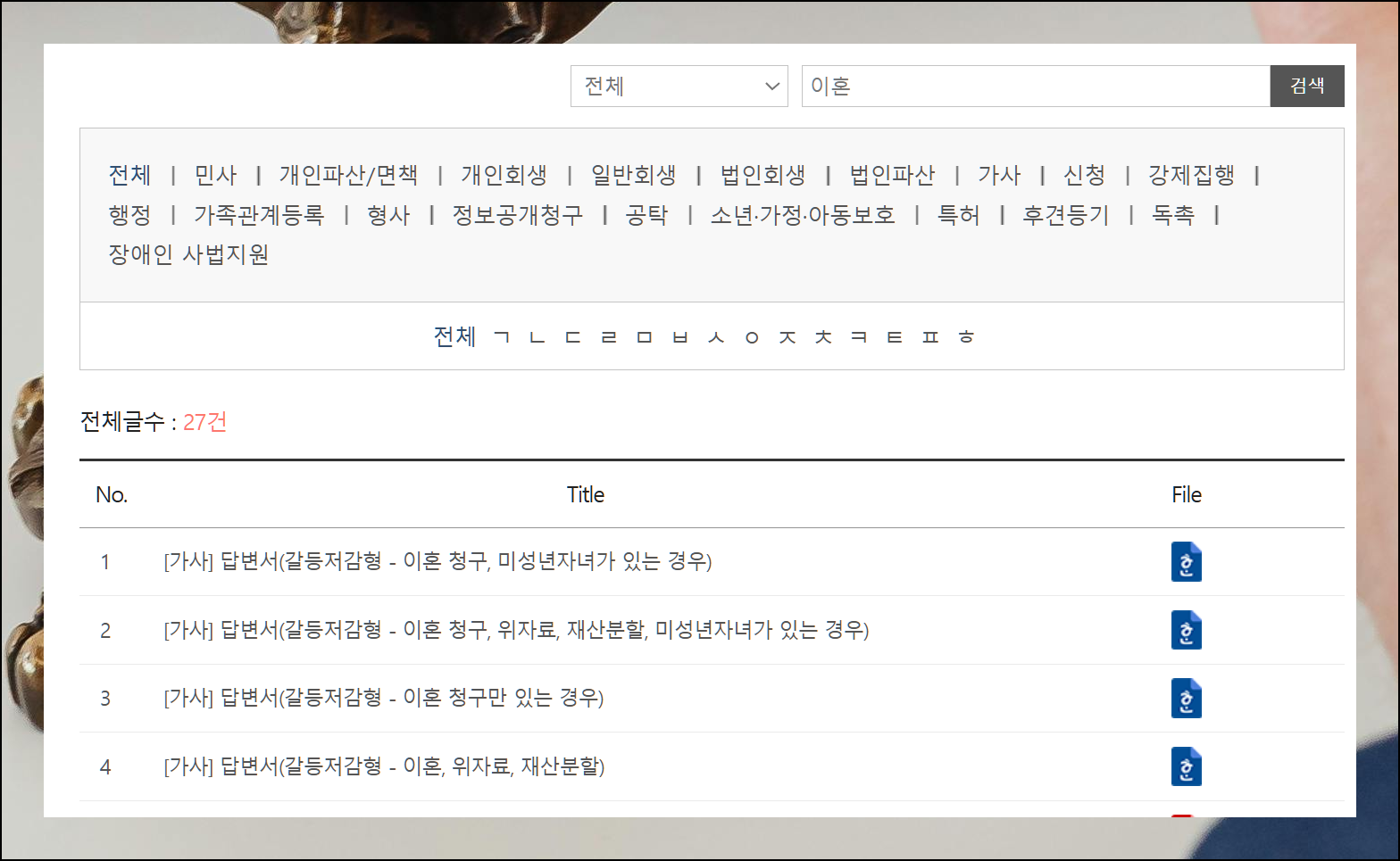이곳에서 다운 받거나 사용할 수 있는 양식은 수십가지가 되는데요. 검색창에 입력하면 필요한 양식을 쉽게 찾을 수 있습니다. 상황에 맞는 양식을 선택해서 사용하시면 돼요.