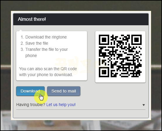 QR코드나 이메일로 벨소리를 무료로 받을 수 있어요. 로그인도 필요 없이 Download 버튼 하나로 끝납니다. 이메일로 받고 싶다면 Send to mail을 선택해주세요. 스마트폰으로 바로 전송돼요.