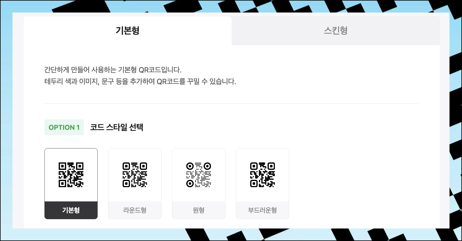 qr코드 만들기의 첫 단계는 제목 입력이에요. 테두리 색상과 스킨으로 나만의 개성을 표현해보세요. 직관적인 방법으로 쉽게 디자인할 수 있습니다.