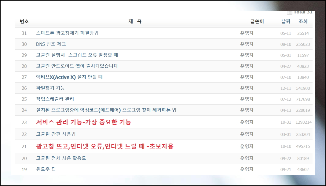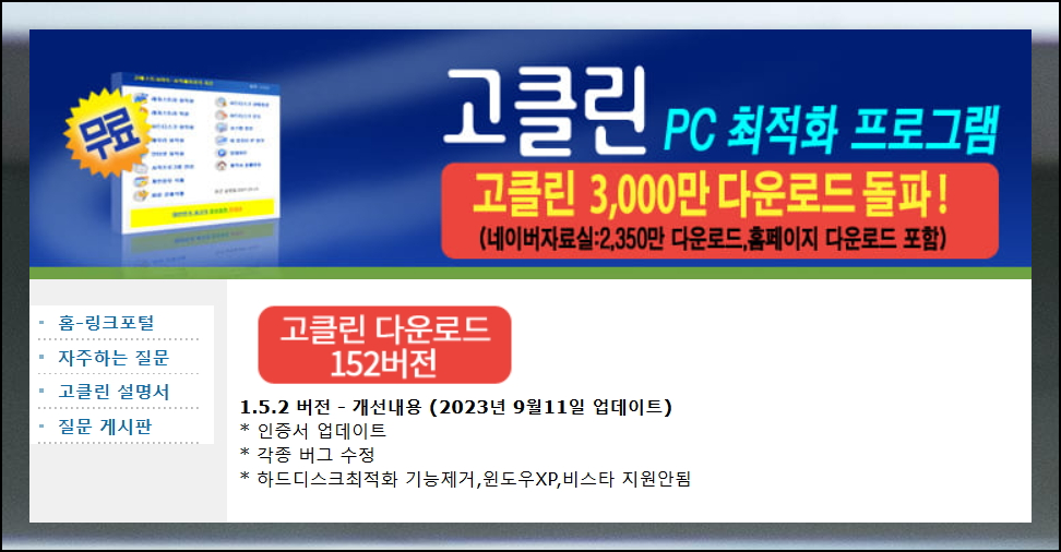 고베스트 사이트의 고클린 무료다운로드 게시판에서 최신 버전을 만나보세요. 152버전까지 나온 검증된 프로그램입니다. 꾸준한 업데이트 덕분에 최신 컴퓨터에서도 완벽하게 작동해요. 업데이트 내역도 상세하게 확인할 수 있습니다.