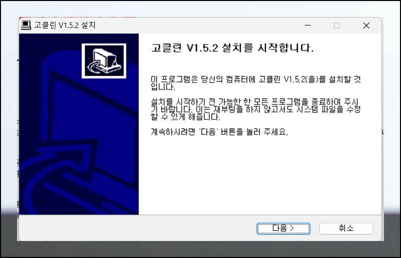 고클린 무료다운로드 설치는 매우 간단합니다. 안내 창의 지시사항을 따라 다음 버튼만 누르면 돼요. 프로그램 그룹이나 바탕화면 아이콘 생성은 선택사항입니다. 원하는 대로 설정하면 됩니다.