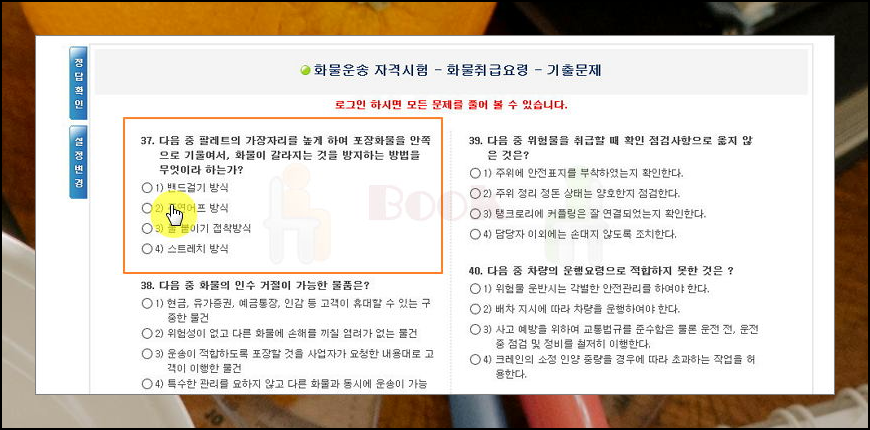 원하는 과목의 기출문제를 선택하면 바로 학습을 시작할 수 있어요. 팔레트 사용법이나 위험물 점검사항 등 실제 업무에 필요한 내용을 배울 수 있습니다. 실무 능력 향상에도 큰 도움이 되니 꼭 활용해보세요. 선배 기사님들의 노하우도 함께 확인할 수 있죠.